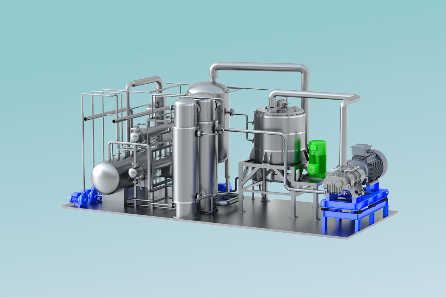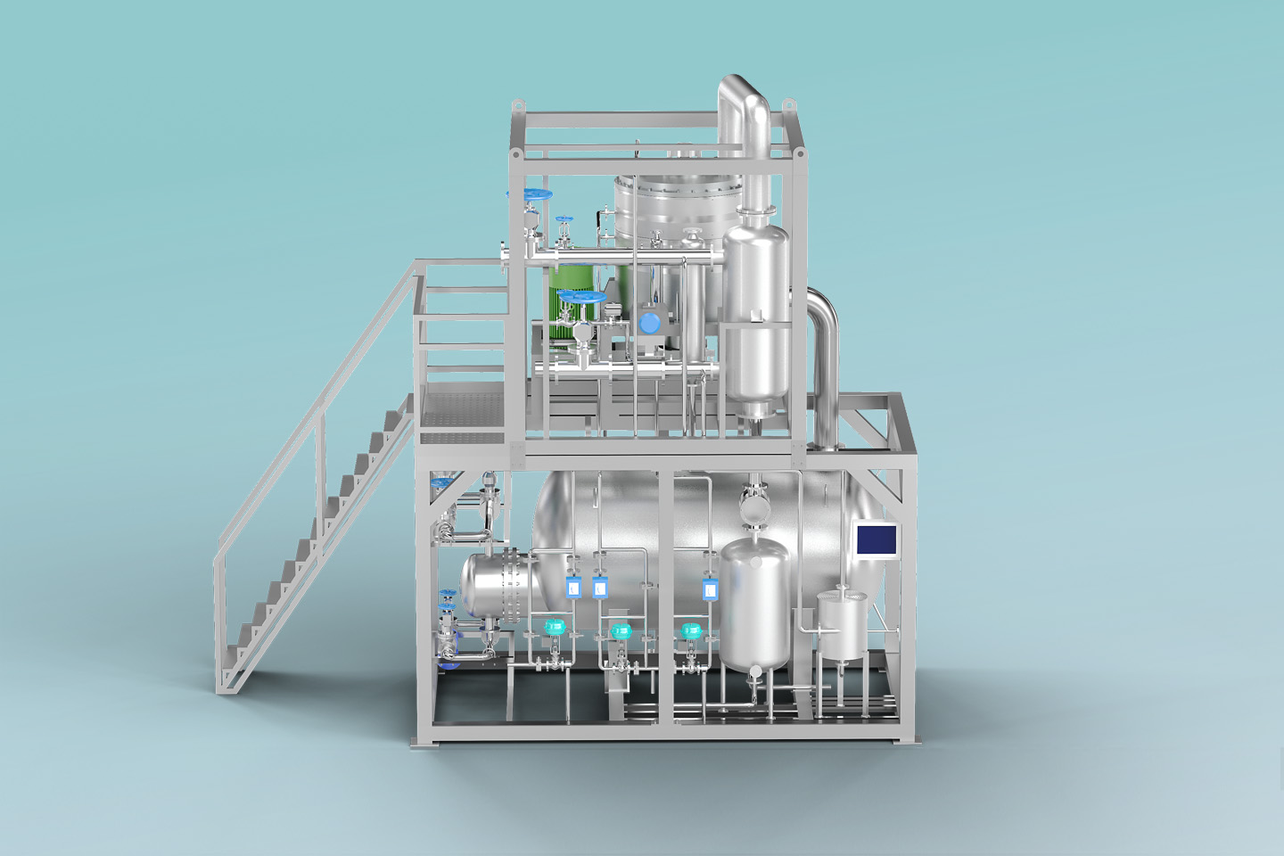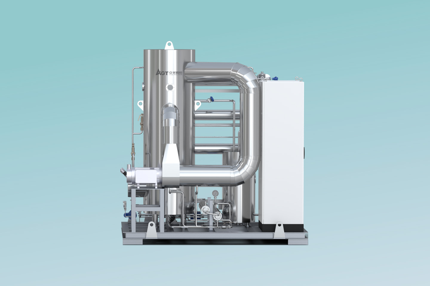 了解詳情MVR熱泵精餾系統(tǒng)以高效旋轉(zhuǎn)精餾床為基礎(chǔ),利用離心力場(chǎng)代替重力場(chǎng),強(qiáng)化相與相之間的相對(duì)速度和相互接觸,通過(guò)強(qiáng)化傳質(zhì)傳熱來(lái)提高分離效率縮小設(shè)備體積。 通過(guò)在系統(tǒng)中引入適用于小流量、大壓比的螺桿式蒸汽壓縮機(jī),即可實(shí)現(xiàn)MVR循環(huán)熱泵精餾。